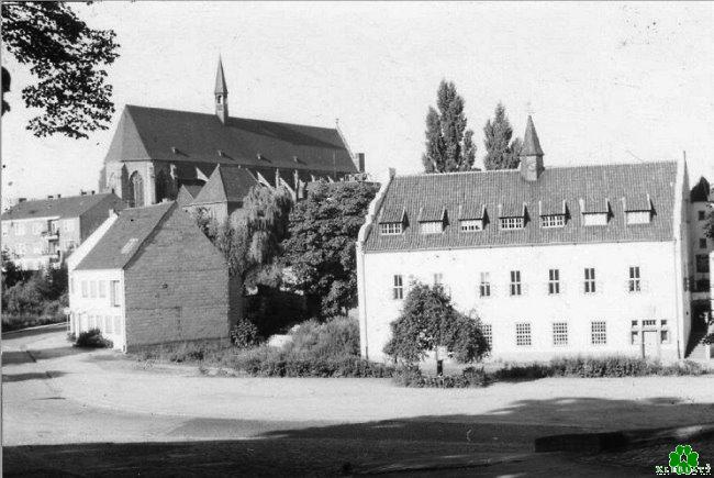 Anfang der Fünfziger Jahre bot sich dem Betrachter dieses Bild aus Richtung Schwanenburg. Der Marstall rechts besaß noch einen „Vorgarten“, das Haus links davon war bereits wieder einigermaßen aufgebaut worden und der Stiftskirche im Hintergrund fehlten noch die beiden markanten Türme. Das Denkmal des Großen Kurfürsten lag noch irgendwo zerstückelt herum.