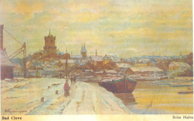 Winterlicher Hafen von Bad Cleve So sah der Maler W.Lachenmeyer etwa um das Jahr 1930 herum die winterliche Landschaft am Hafen. Verschneite Dächer, Schiffe und Wege zeigen einen Eindruck vom damaligen Bad Cleve zur Winterzeit.