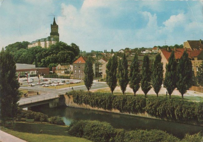Da war Kleve noch etwas übersichtlicher als heute. Der Parkplatz an der Stadthalle war noch nicht komplett besetzt und es waren auch noch keine Parkuhren notwendig. An der Lohstätte war noch einiges an Freifläche zu sehen und der Eingang zur Gasthausstraße sah ein wenig anders aus. Am Spoyufer standen noch wunderbare hohe Bäume und die Uferbefestigung war noch grün bewachsen. Dahinter viel freier Platz. Die Schwanenburg rundet ein tolles Bild aus Kleves Vergangenheit ab.