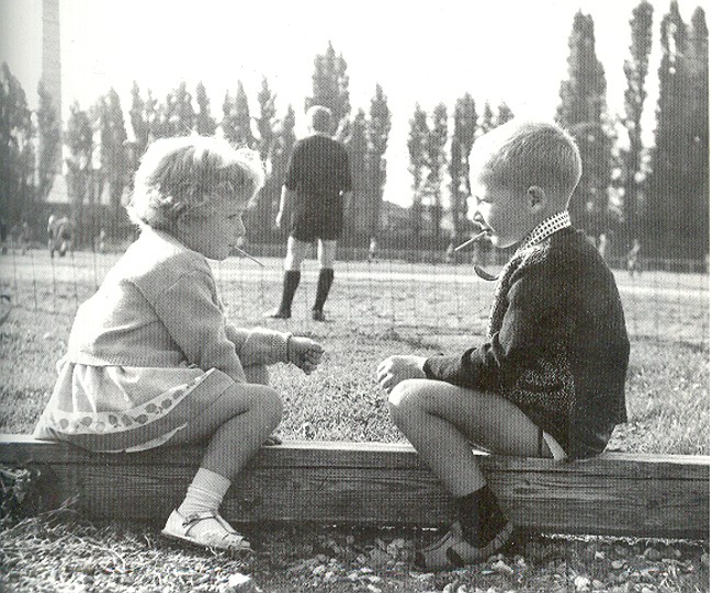 Hier sehen wir zwei kleine „Verliebte“ hinter dem Tor beim BV Kellen, während Papa Fußball spielt. Mit einem Lolli im Mund schauen sie sich ganz verträumt an. Ob die beiden mittlerweile verheiratet sind und Kinder und Enkel haben? Wer weiß? 😉
