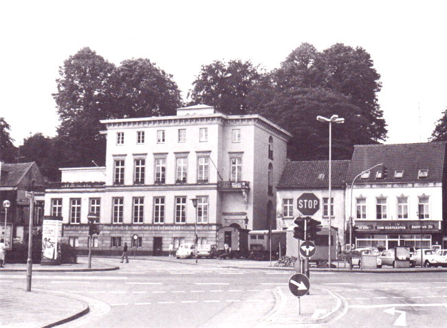 Die Bauwagen sind im Hintergrund schon zu erkennen. Vermutlich ging es um den Abriss des Hauses links von der Gaststätte „Zum Kurfürsten“ an der Koekkoekstege. Oder war es der Beginn der Bauarbeiten zur Änderung der Straße. Oder noch etwas anderes? Trotzdem ein schöner Blick aus anderen Zeiten.