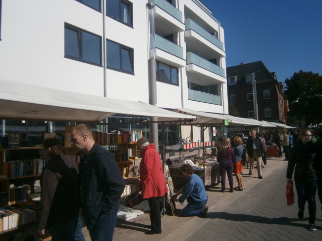 Alte Bücher vor neuem Hotel. Das hatte schon etwas Besonderes. Man merkte auch ein gesteigertes Interesse an Büchern und Literatur von und über Kleve und die Region.