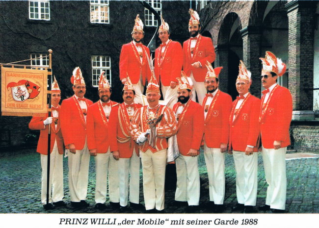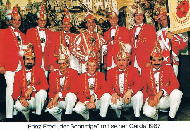 Klever Prinzengarden der 80er Jahre – Teil 2 1986 – Prinz „Peter der Putzige“ Peter Eerden 1987 – Prinz „Fred der Schnittige“ Fred Quinkertz 1988 – Prinz „Willi der Mobile“ Willi Seeger 1989 – Prinz „Alfred der Fröhliche“ Alfred Craemer