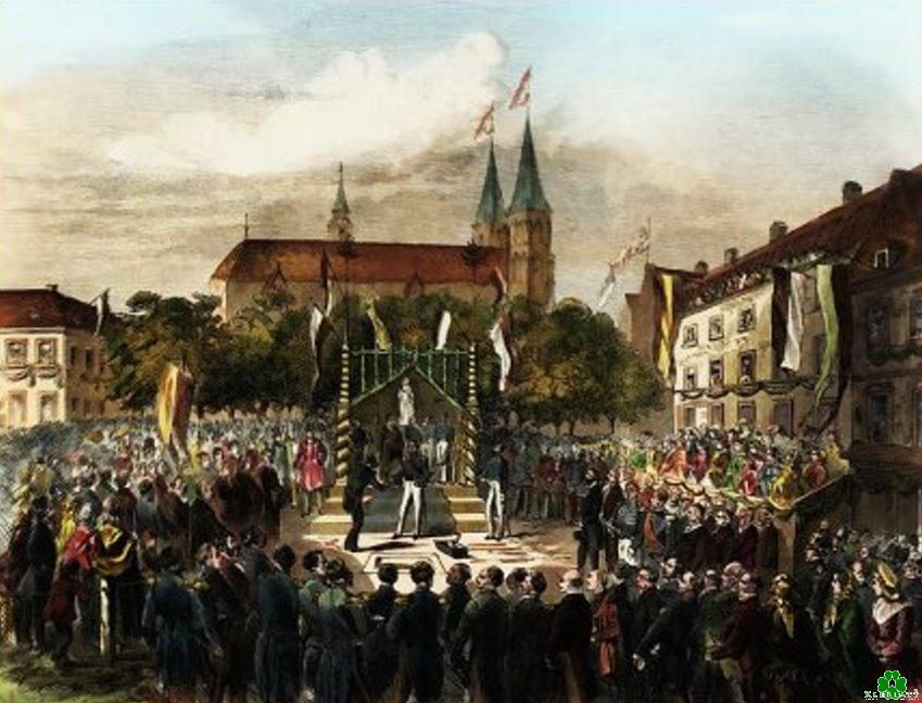 Hier sehen wir die damaligen Feierlichkeiten zur Enthüllung des Standbildes.
