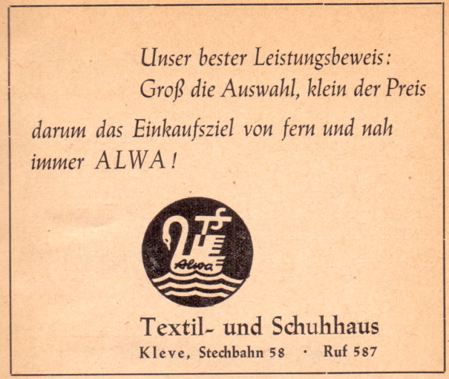 Man sollte meinen, jeder wüsste jetzt, worum es eigentlich geht. Aber wohl weit gefehlt. Obwohl diese Werbung von 1950 davon spricht, das das Textil- und Schuhhaus ALWA das Einkaufsziel für fern und nah sei – keiner hat es so wirklich mitbekommen.