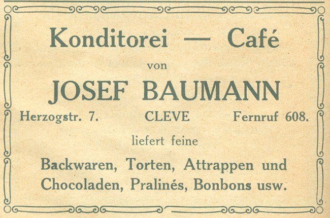 Möglicherweise kann sich sogar noch jemand an das Cafe‘ Baumann in Kleve auf der Herzogstraße erinnern.