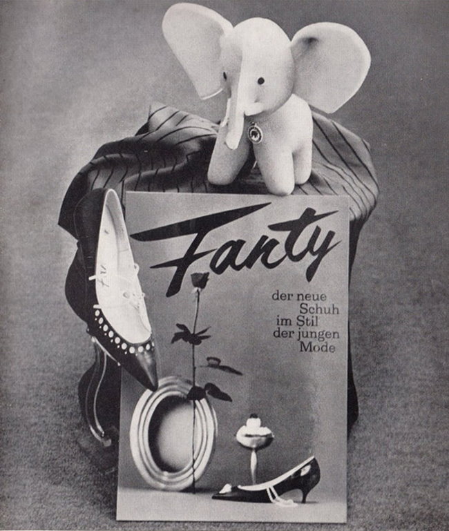 Nicht nur Kinderschuhe, sondern auch Damenschuhe im Stil der neuen Mode brachte die Klever Schuhfabrik Gustav Hoffmann auf den Markt, wie man hier sehen kann. Allerdings ist der vom Elefanten abgeleitete Name des Schuhs „Fanty“ selbst Anfang der Sechziger sicherlich nicht unbedingt der Bringer gewesen.