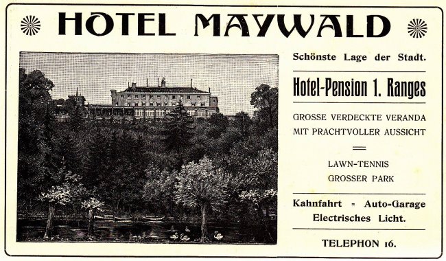 Aber neben dieser Attraktion hatte man ja noch mehr zu bieten, wie die große verdeckte Veranda mit prachtvoller Aussicht, einen großen Park, Kahnfahrten, Auto-Garage und – man höre und staune – electrisches Licht. 🙂