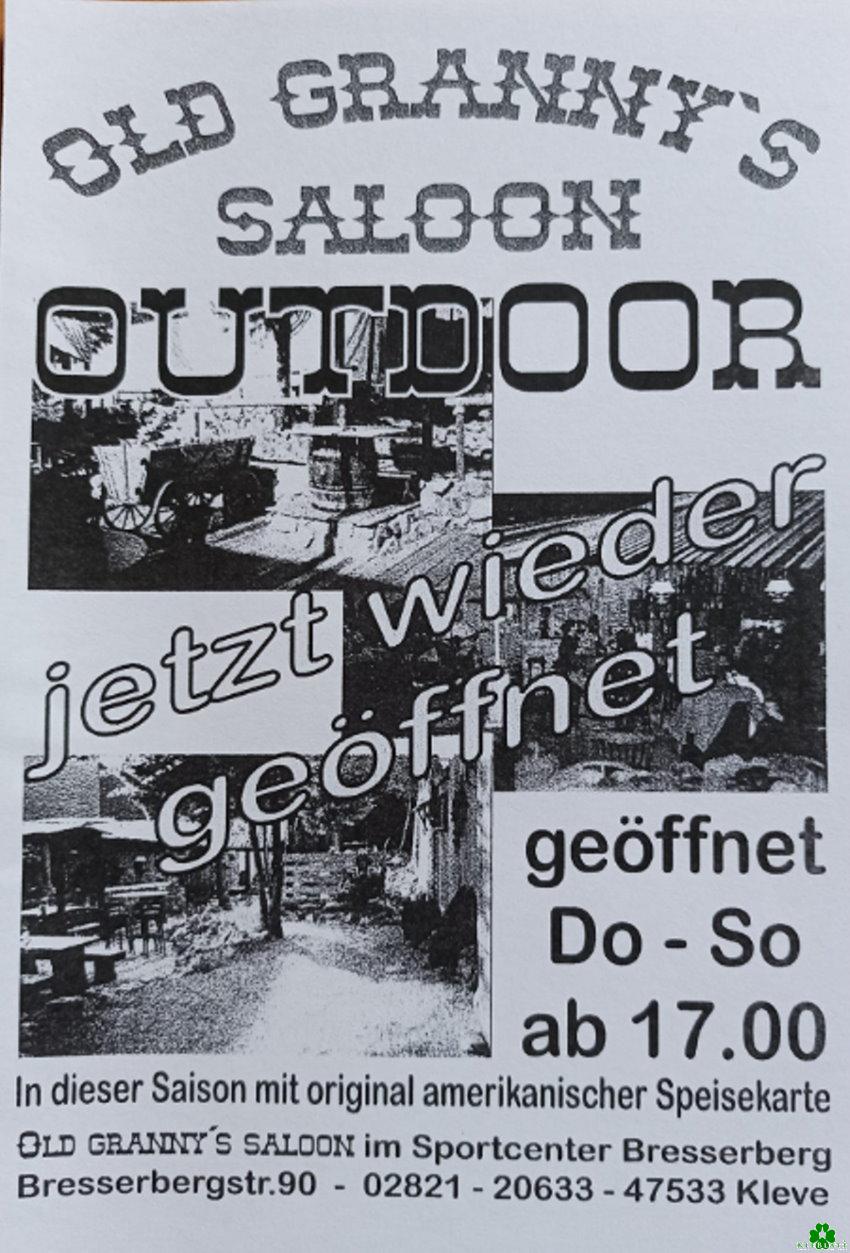Leider handelt es sich um einen Werbeflyer aus dem Jahre 2001 für eine Veranstaltung im Sportcenter Bresserberg. Richtige Kenner hätten alleine am doppelten „N“ den Fehler bemerkt. Das Original schrieb sich „Old Grany’s Saloon“ und Outdoor gab es dort nicht.