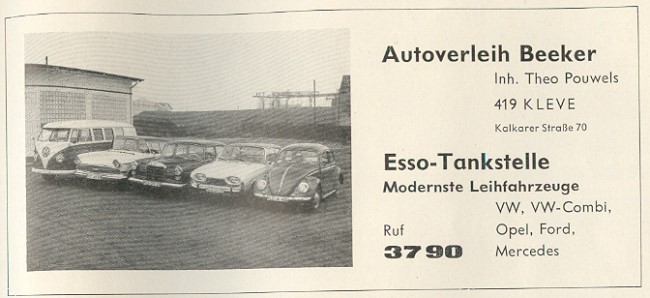 Damals gehörte diese Auswahl an Fahrzeugen zum normalen Programm des Autoverleihers in Kleve.