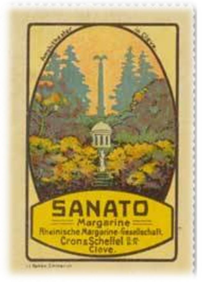 Die Rheinische Margarine Gesellschaft Cron & Scheffel GmbH Cleve stellte seinerzeit die „weltberühmte“ Margarine „Sanato“ her, die es leider nicht auf die Hitliste der beliebtesten Brotaufstriche geschafft hatte.